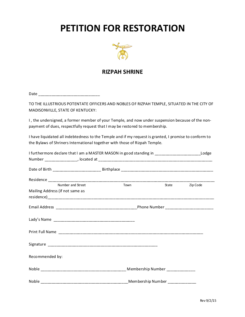 Petition for Restoration